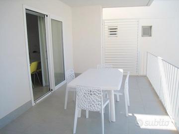 Questo appartamento di mq. 60, dotato di una veranda di 23 mq, si trova al primo piano dell'elegante "Residence Agorà" a pochi passi dal mare e dalle spiagge sabbiose. Goditi la comodità di avere tutti i servizi a portata di mano, dai supermercati ai ristoranti, nel raggio di 500 mt.