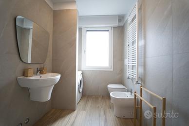 Il bagno è finestrato ed è dotato di piatto doccia, lavabo, wc, bidet.