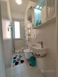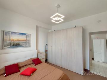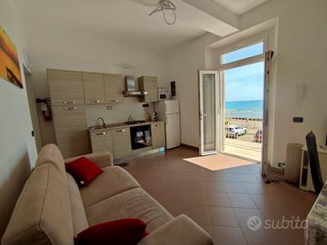 Delizioso appartamento situato al primo piano con balcone vista mare. Entrando in casa si trova in un salone con angolo cottura con tutti gli elettrodomestici necessari, Aria Condizionata, forno, Forno a microonde, Lavatrice, Wi-Fi. Il salotto ha un divano-letto matrimoniale molto comodo., con bagno . Camera matrimoniale ampia con il bagno annesso. Giardino con la doccia esterna , Rimessaggio Bici.
