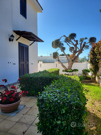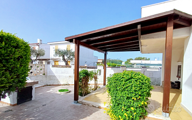 Porto Pirrone marina di Leporano. zona ben servita a 300mt dal mare nelle vicinanze di Canneto beach e Gandoli. 4 camere da letto suddivise su 2 piani con per max 6 persone . Aria condizionata di zona su entrambi i piani . 2 bagni uno di servizi piano terra l 'altro completo piano superiore . Zona esterna relax con giardino , pergolato in legno e barbecue. Doccia esterna . Acqua potabile.