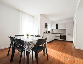 Contesto completamente nuovo, con riscaldamento a pavimento, cucina attrezzata con lavastoviglie, microonde e macchinetta del caffe.