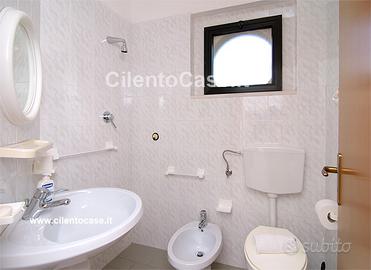 Appartamento per vacanze estive sul lungomare di Marina di Casal Velino a 50 mt dalla spiaggia. Su 2 livelli con una superficie interna di circa 70mq può ospitare fino a 4 persone. Casa Benedetta si compone di: ampia sala da pranzo con angolo cucina attrezzato e bagno con doccia al piano terra; 2 camere da letto (matrimoniale vista mare e doppia) e bagno al primo piano. Davanti all'ingresso dell'alloggio c'è uno spazio dove è possibile parcheggiare l'auto e un angolo attrezzato con tavolo e sedie. Dalla sala da pranzo, al piano terra, si accede all'area retrostante con doccia all'aperto. La biancheria viene fornita su richiesta a pagamento. L'appartamento è fornito, inoltre, di lavatrice e tv. Una sistemazione comoda e in ottima posizione, ideale per famiglie che vogliono trascorrere una vacanza al mare. La spiaggia a 50 metri è raggiungibile a piedi in 1 minuto. I principali servizi e il centro sono a meno di 300 metri. Nel periodo estivo si possono visitare le mete più ambite del Cilento e l'isola di Capri grazie al servizio Metro del Mare che fa scalo al porto di Casal Velino.