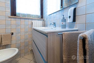 Il bagno è pratico, dotato di doccia ampia con dispencer per bagnoschiuma e shampoo, lavabo, mobile con asciugamani e teli doccia.