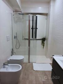 Bagno moderno: Ampia doccia con soffione a pioggia, asciugamani morbidi, asciugacapelli e set di cortesia.