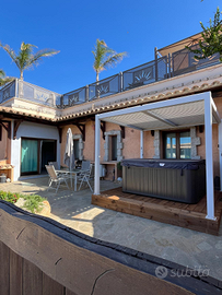 All'esterno, gli ospiti possono godere di una terrazza privata di 50m² con una jacuzzi per 6 persone, ideale per momenti di relax. Inoltre, è presente un barbecue per preparare i propri cibi preferiti, e un tavolo con sedie per trascorrere piacevoli momenti in compagnia e rilassarsi nel giardino privato.