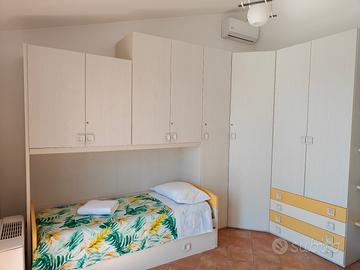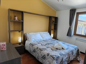 Affittasi Casa vacanze "Hakuna Matata" al primo piano di una villetta a schiera in Pontecagnano Faiano (SA) lungo l'Aversana ed alle spalle della loc. Magazzeno. 750m dal mare in linea d'aria e raggiungibile con auto in 3/4 minuti percorrendo 2km. Posizione strategica anche per raggiungere tante mete come la Costiera Amalfitana, Salerno, Aeroporto, Paestum, Agropoli, Cilento, Acquapark Isola Verde - Disponibili 6 posti letto (1 matrimoniale, 2 singoli, 1 comodo divano letto matrimoniale in una sezione del salone) distribuiti in 2 camere da letto, ampia cucina/salone e bagno - Terrazza attrezzata di 55mq con tavolo, divanetti, tenda elettrica, lavandino, doccia calda ed illuminazione led rgb per pranzi e cene all'aperto vista mare e tramonto - Nuovo allestimento con tutti i comfort possibili: wifi, climatizzatori in ogni ambiente, lavatrice, caffè in cialde e moka, microonde e forno separati, pentole, bollilatte e bollitore, 2 smart tv, frigorifero, piano cottura ad induzione, camino, zanzariere, asse e ferro da stiro, phon, kit bagnodoccia all'olio bio, tris di asciugamani per ogni ospite, lenzuola e coperte incluse - ingresso con cancello automatico per un comodo parcheggio riservato e gratuito sotto casa Prezzi molto convenienti e servizio di grande qualità!