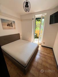 Sala con un letto, cucinino, bagno, camera matrimoniale ed uno spazio esterno dove si può comodamente mangiare. Per raggiungere l'appartamento bisogna salire una ventina di gradini.