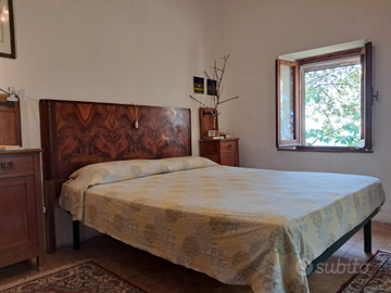 l'immobile è dotato di ampia corte circondata da alberi, recintata , parcheggio auto dedicato. Composto da cucina piu' vano, sala da pranzo, sala TV-DTT / musica, due camere da letto (Matrimoniale e l'altra con 2/3 letti) , all'occorrenza divano letto x 2 persone in sala TV, ampio bagno con doccia,tutte le finestre sono dotate di zanzariere, terrazzo d'ingresso arredato, dove sono immancabili pranzo e cena quotidiana. L'immobile è arredato con mobili restaurati tipici e dotato di tutto l'occorrente, stoviglie, lavatrice,biancheria, non presente aria condizionata e linea telefonica, ottima ricezione smartphone . Zona relax pavimentata in legno affacciata sull'immenso panorama per aperitivi, arredato e solarium, con doccia c/f. dove si possono ammirare stupendi tramonti. Barbecue in muratura.