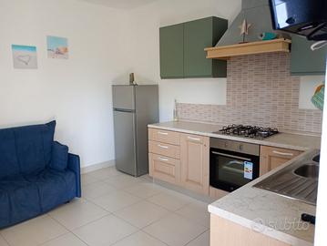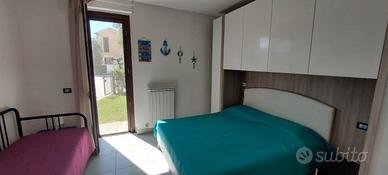 L'appartamento è composto da ampia camera con letto matrimoniale e letto singolo con uscita sul giardino, bagno con box doccia e lavatrice, zona giorno con divano letto alla Francese, Tv led, cucina a vista con lavastoviglie , forno e macchina caffe' espresso Borbone e tutto l'occorrente necessario. Climatizzato in zona giorno e in camera con zanzariere in tutte le stanze.