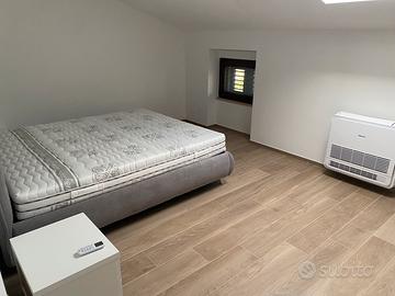 Nell'appartamento è presente una cucina a vista con salone e letto matrimoniale a scomparsa (in foto)+ divano letto x 2 bambini, più al secondo piano una camera matrimoniale e una cameretta con 3 posti letto e un bagno con box doccia.