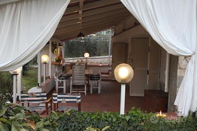 La casa è sita al piano terra di Villa bifamiliare, è composta da 2 camere da letto matrimoniali, ampio salone e cucina open space con divano apribile e wc, all'esterno ampio patio con tavolo da pranzo, barbecue e forno a legna.