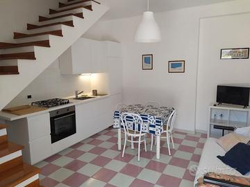 La casa è composta al piano terra da soggiorno con angolo cottura ed un ampio terrazzo vivibile, mentre al piano superiore troviamo due camere da letto, il bagno ed un secondo ampio terrazzo.