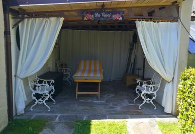 Casetta/bar in giardino attrezzata con cucina, porticato, TV e doccia calda