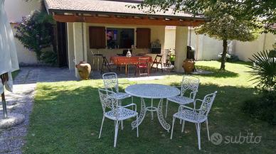 Appartamento in elegante Villa con ampio giardino; ideale per famiglie con bambini o 4 adulti. Max 4 persone. Nuovo e ben arredato, composto da 2 camere con letti matrimoniali, ingresso/disimpegno, cucina attrezzata, salotto con terrazzo vivibile, bagno con vasca e ripostiglio.