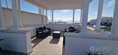 Terrazzo panoramico con torrino vista mare dove poter ammirare dei bellissimi tramonti, dotato di divani e poltrone relax e sdraio prendisole.