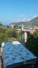 Affitto casa in splendido uliveto: due camere, due bagni, un grande soggiorno e cucina + terrazzo vista mare. Doccia esterna e giardino con barbecue. Posto auto. Si raggiunge il centro e la spiaggia anche a piedi lungo un sentiero di 10 minuti.