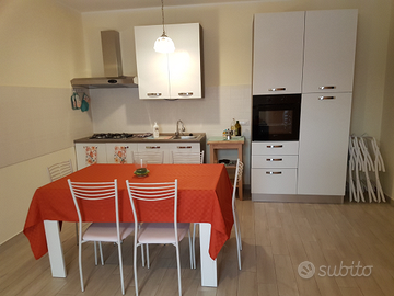 Si affitta per brevi periodi casa vacanze fronte mare al piano terra, appena ristrutturata, arredata con mobili nuovi e climatizzata. Si compone di bel salotto di ingresso con divano letto matrimoniale e clima caldo/freddo, zona living con cucina - soggiorno ed accesso al terrazzino fronte mare, 2 camere da letto matrimoniali, bagno e ripostiglio
