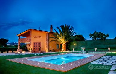 Affittasi stupenda villa vacanze indipendente con piscina, uso esclusivo, a Petacciato, a 6 km dalla spiaggia, fronte isole Tremiti. Appena ristrutturata, la casa può ospitare da 6 ad 11 persone, nei suoi 120mq con 3 camere da letto e due bagni. Dotata di ogni confort. Inclusi nel prezzo utenze, climatizzazione, biancheria, servizio spiaggia del valore di ? 215,00 a settimana (1 ombrelllone, 2 sdraio, 2 lettini al lido Calipso di Petacciato). La villa ha un recinto fittissimo e contornato da piante che non permettono l'ingresso di animali tranne qualche gatto. Inoltre non si può vedere dall'esterno l'interno tranne un lato vista mare. Spiaggia , anche libera isolata a ridosso di pinete, a 5 minuti di macchina.