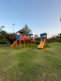 La struttura è sita in un complesso immerso nel verde, dispone di n 2 piscine,spiaggia privata che si raggiunge facilmente a piedi attraversando una piccola pineta e parco giochi per bambini, parcheggio privato incluso.