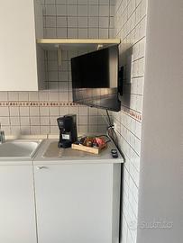 Affitto appartamento ad Albenga bilocale da 4/5 posti letto al secondo piano con ascensore , dotato di aria condizionata , accessoriato di stoviglie pentolame biancheria da camera e da bagno , Smart tv , terrazzo vivibile , dista 800 m dal mare ,200 ma dal rinomato centro storico