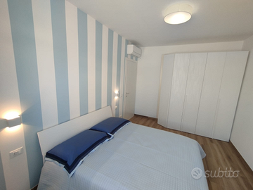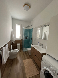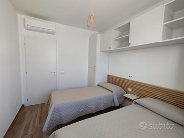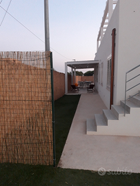 Porzione di villa singola bifamiliare composta da living con cucina e divano letto, camera matrimoniale, camera con due letti singoli e bagno. Esterno ampia veranda e pergolato con barbecue. Doccia esterna. Accesso diretto e indipendente alla spiaggia. Ampio parcheggio.