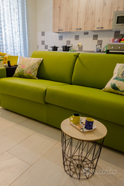 Nel salone è presente uno smart tv 55 pollici e un divano che si trasforma in un comodo letto matrimoniale con materasso da 20cm.