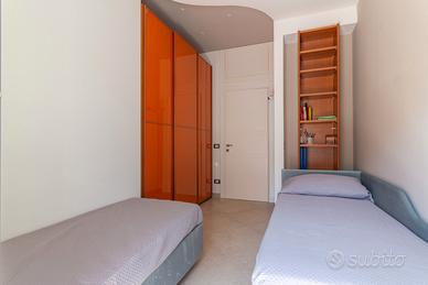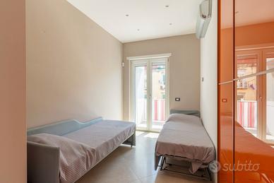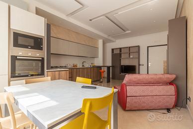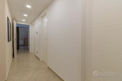 Appartamento di 3 vani con cucina/soggiorno area living, corridoio, camera da letto matrimoniale e camera da letto con due singoli/matrimoniale adattabile a studio; affaccio strada con ampia balconata.
