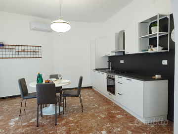 In piccolo abitato dotato di tutti i servizi (lavanderia, forno, supermercati, negozi, banche) Si affitta per brevi periodi, appartamento di recentissima ristrutturazione di 120mq posto al piano primo, con ingresso indipendente, camera matrimoniale, cameretta arredata con due letti ad una piazza e mezza.