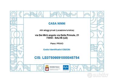 CIN IT075066C200090279 CIS LE07506691000045754 SALENTO - Maldive del Salento Pescoluse / Torre Vado ESTATE 2026 CASA NINNI - Vista mare Luminoso appartamento al primo piano, con splendida vista mare, situato a soli 150 metri dalla spiaggia e da tutti i principali servizi: ristoranti, farmacia, alimentari, lungomare e luna park per bambini. La spiaggia di Pescoluse, conosciuta come le Maldive del Salento, offre sabbia finissima e bianca e acque cristalline, perfette per famiglie e amanti del mare. L'appartamento è composto da: * Ampio soggiorno open space * Cucina attrezzata (forno e frigorifero) * 2 camere da letto + 2 posti letto aggiuntivi * Bagno finestrato con doccia * Corridoio disimpegno * Grande terrazza vista mare attrezzata con: * Tavolo per mangiare all'aperto * Barbecue * Salottino * Sdraio Comfort inclusi: ? Aria condizionata ? Ventilatore ? Lavatrice ? TV ? Zanzariere ? Doccia esterna ? Tutto il necessario per una vacanza rilassante ? Posto auto gratuito su strada con pass (zona riservata ai residenti) ??????? Ospita fino a 6 persone ? Per informazioni e prenotazioni: Anna - 333 5883652