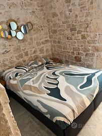 Luminosa dimora ottocentesca con volte in pietra. Perfetta per coppie e piccole famiglie, con uno spazio esterno privato per godersi l'aria aperta di Ostuni. L'appartamento è a pochi passi dal centro storico e si trova al piano terra con soggiorno (Divano letto matrimoniale, per una seconda coppia o due bambini), zona vasca idromassaggio, camera, bagno (No bidet, ma doccetta-bidet) e spazio esterno. Aria condizionata, macchina caffè, stoviglie, frigorifero e cantinetta vino. La casa è indipendente al piano terra ed è climatizzata, completa di Wi-Fi e Smart tv 32 pollici. Si affitta per brevi periodi, prezzo diverso in base al periodo.