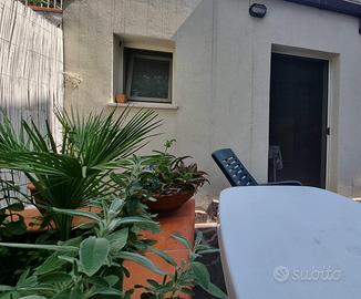 Il monolocale dispone di uno spazio esterno arredato e recintato.