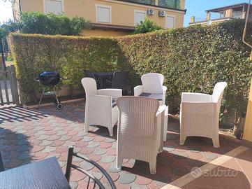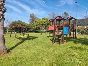 Immaginate di svegliarvi immersi nella quiete di un prestigioso Residence a 5 stelle, a pochi passi dalle acque cristalline della Calabria e dal fascino storico della città di Pizzo. Casa Cristina è un angolo di paradiso pensato per offrire alle famiglie e alle coppie un'esperienza di totale relax e comfort. L'appartamento accoglie i suoi ospiti in un ampio e luminoso ambiente che fonde la zona giorno con quella notte. Qui troverete una cucina interna attrezzata per ogni vostra esigenza, ma il vero cuore della casa è lo splendido giardino privato. Arredato con gusto, il giardino ospita un patio con una cucina esterna e un barbecue: il luogo ideale per preparare una cena all'aperto o godersi un aperitivo tra poltrone e profumi mediterranei. Per il riposo, oltre al letto principale, è presente un comodo divano letto perfetto per ospitare fino a 2 bambini. Ogni dettaglio è pensato per farvi sentire a casa: dall'aria condizionata alla TV satellitare, fino alla macchina del caffè. Soggiornare qui significa avere un accesso privilegiato a servizi d'eccellenza. Con una breve passeggiata di 5 minuti attraverso un profumato sentiero nella pineta, si raggiunge la nostra spiaggia privata, dove ombrellone e lettini vi aspettano già inclusi nel prezzo. La struttura mette a disposizione due splendide piscine all'aperto, oltre ad ampie aree verdi e spazi gioco dedicati ai più piccoli. Per garantire la massima esclusività, durante l'alta stagione, l'accesso ai servizi è regolato da un pratico braccialetto che riceverete al vostro arrivo. Situata a soli 15 km dall'aeroporto di Lamezia Terme, Casa Cristina offre parcheggio privato. Vi proponiamo i seguenti soggiorni settimanali: dal 30/05 al 20/06 Euro 450,00 a settimana; dal 20/06 al 04/07 Euro 550,00 a settimana; dal 04/07 al 18/07 Euro 650,00 a settimana; dal 18/07 al 01/08 Euro 800,00 a settimana; dal 01/08 al 22/08 da concordare in privato; dal 22/08 al 05/09 Euro 600,00 a settimana. Pulizia finale Euro 50,00 a soggiorno