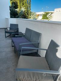 L'appartamento è climatizzato, dotato di una camera da letto (composta da letto matrimoniale e lettino), una cucina con angolo cottura, divano letto a due piazze, quindi totale cinque posti letto (ideale per famiglie). Inoltre bagno con doccia, balcone abitabile con salottino. In dotazione due tv, lavatrice, condizionatori, phone, aspirapolvere, tessili letto e cucina, stoviglie, macchina del caffè con capsule, bicicletta, biancheria bagno è tutto il necessario. Ulteriori info in privato.