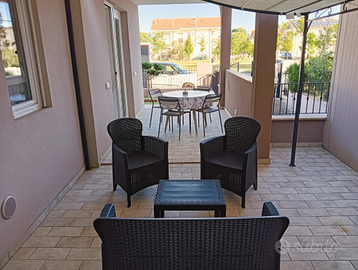 Appartamento sito in zona alba via Torriglia 13 in villetta bifamiliare al piano terra di nuova costruzione dotato di ogni confort. In zona ben servita da minimarket ristorante forno ecc,siamo a 700 MT dal mare e 500 da viale Dante ,può ospitare 4 persone composto da ,cucina e soggiorno con divano letto matrimoniale bagno camera matrimoniale con letto matrimoniale più letto singolo, veranda esterna con giardino .