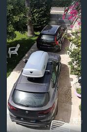 UN FUNZIONALE PORTICO , un gradevole ampio giardino con barbecue ed una area per posto per due auto o un camper completano le dotazioni dell' appartamento.