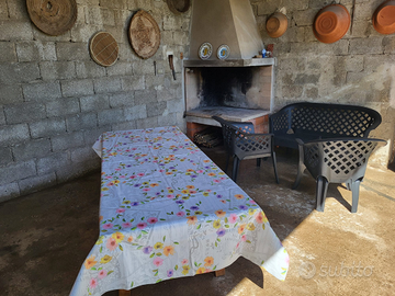 dispone tre camere da letto matrimoniali ,con la possibilità di aggiunta di due letti singoli,ognuna fornita di climatizzatore. Ampia cucina dotata di tv, frigorifero, angolo colazione con macchina del caffè, cappucinatore e microonde, anche'essa climatizzata .Spaziosa sala con poltrone e divano ,dotata di Tv, Wifi disponibile in tutta la casa. Sono presenti due bagni con doccia ,di cui uno con lavatrice. Veranda relax, adiacente alla ampia zona esterna ricca di piante ,in cui troverete un camino barbecue con tavolo e sedie per mangiare anche all'aperto. Potrete godere della compagnia dei vostri animali, La casa infatti è Pet Friendly !