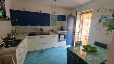 ---NON DISPONIBILE LUGLIO E AGOSTO--- Affittasi per brevi periodi appartamento a 100 mt dalla meravigliosa spiaggia di San Saba. L'appartamento di circa 100 mq si trova al primo piano di un piccolo complesso di recente costruzione ed è organizzato su due livelli. Al primo piano la zona giorno si compone di ampia cucina completamente accessoriata (forno,microonde, lavastoviglie) dotata di piccolo balcone, bagno completo con doccia, ampio salone con 1 divano e un letto che affaccia sua una veranda di 12 mq con una meravigliosa vista mare. Al secondo piano si trovano due camere con letto matrimoniale e bagno completo con doccia e lavatrice, una delle camere è dotata di balcone vista mare. Entrambe le camere da letto sono climatizzate, ben arredate con materassi in memory foam. Nel complesso è disponibile posto auto per utilitaria e doccia condominiale. L'appartamento non è idoneo ad ospitare animali. Disponibile nei mesi di: - GIUGNO, SETTEMBRE e OTTOBRE affitto settimanale o mensile.