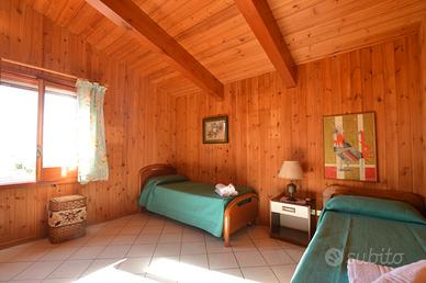 Al piano terra oltre ad una veranda coperta ampia e arredata con tavolo e sedie, si trova la cucina con piano cottura ad induzione, una camera da letto con due letti singoli, un bagno con doccia ed un ampio soggiorno dotato di aria condizionata. Al primo piano oltre ad un confortevole salotto si trova il bagno dotato di vasca da bagno, la camera da letto con letto matrimoniale e un'altra camera da letto con due letti singoli: entrambe le camere da letto sono dotate di aria condizionata.
