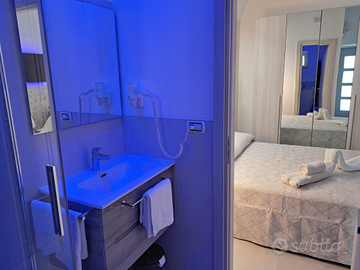 Casa Vacanze Serenity Home offre un Monolocale con un letto matrimoniale, un divano letto a castello, in tutto 3 posti letto, un bagno con wc, bidet, doccia e mobile con lavabo. Angolo cottura, lavatrice, TV, forno a microonde, bollitore elettrico.