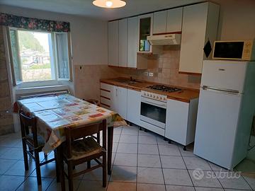 Si affitta appartamento con accesso indipendente così composto: ingresso, due camere matrimoniali con due letti a castello per 8 posti letto, altro vano utilizzabile come deposito sci e attrezzature connesse o altro, cucina abitabile, due bagni, uno con doccia, l'altro con vasca riscaldamento autonomo con caldaia a gas metano e volendo in ausilio stufa a legna in cucina. Posizione privilegiata vicino alla seggiovia per impianti di risalita, parcheggio nel cortile privato a due passi dal centro. Disponibile per info e prenotazioni tel. 3291548752