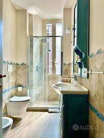 Delizioso appartamento (finito di ristrutturare ad agosto 2023) PER VACANZE O PER BREVI PERIODI NON SUPERIORI AI 30 GIORNI CONSECUTIVI, situato in un palazzo storico del quartiere Testaccio, lo storico palazzo dei Ferrovieri, Nelle vicinanze ci sono supermercati, bar, ristoranti, Mc Donald, farmacia. La stazione di Trastevere è circa 5 minuti di cammino e con il treno potrete raggiungere la Stazione Termini, l'aeroporto di Fiumicino e San Pietro. Facilmente raggiungibile è anche la fermata metro Piramide. L'alloggio è dotato di 5 posti letto, 2 bagni e cucina, si trova al piano rialzato (5 gradini) ed è facilmente accessibile anche a passeggini. La superficie totale è di 70 mq. E' dotato di tutto il necessario per sfruttare al meglio il tuo soggiorno: wi-fi gratuito, aria condizionata indipendente, riscaldamento autonomo, smart TV (netflix), forno, macchinetta caffè, bollitore, cassetta di sicurezza, lavatrice ed asciugatrice. Soggiorno con angolo cottura con piano ad induzione, forno elettrico, frigorifero con congelatore, è presente un divano letto matrimoniale che sarà preparato in caso di prenotazione per 4 o 5 ospiti. Il soggiorno è dotato di porta scorrevole che rende l'ambiente con il divano letto e la cucina separato dal resto della casa come se fosse una camera da letto aggiuntiva. Proseguendo sul corridoio affaccia il primo bagno con grande doccia, è presente anche lavatrice ed asciugatrice. La camera da letto, con due grandi finestre dotate di tende oscuranti, può ospitare fino a 3 persone. E' presente un letto matrimoniale con rete a doghe, materasso e cuscini in memory. Nella stanza vi è anche un letto singolo accessibile con scaletta. Nella camera affaccia il secondo bagno anche questo con doccia. Un comodo ripostiglio vi permetterà di riporre le vostre valigie. CIN: IT058091C2DBTNZNJ5