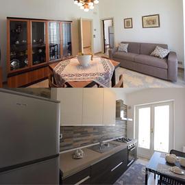 La struttura dotata di ampia area soggiorno, zona pranzo, cucina attrezzata, bagno privato, 1 camera matrimoniale, 1 cameretta, 1 camera con due letti singoli e 1 sala con divano letto, zona lavanderia, offre un ampio balcone, aria condizionata, TV, riscaldamento, lavatrice, connessione WiFi gratuita, e parcheggio e vi darà modo di trascorrere piacevoli momenti di relax nella nostra splendida terrazza con un ottima vista panoramica immersa negli ulivi e vista giardino.