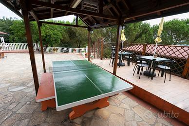Parcheggio interno Grandi spazi a disposizione con piscina 12X5, letto tra gli alberi, barbecue, forno a legna, ping pong, pallaio, air Hockey biliardino, tiro a segno, go kart a pedali e trattore con carrello a batteria decine di giochi da tavolo. Erbe aromatiche. Per chi lavora a distanza scrivania con cavo lan, WI-FI in casa e all'esterno. Bici elettriche a disposizione.