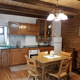 La baita è strutturata su due livelli, l'accesso al piano superiore è nella cucina abitabile con stufa a pellet. Al piano inferiore, tramite una scala a chiocciola, c'è la camera da letto con letto matrimoniale, letto a castello e bagno con doccia. Nella zona giorno sono disponibili ulteriori 2 posti letto. E' possibile richiedere l'aggiunta del lettino da campeggio per i bimbi.