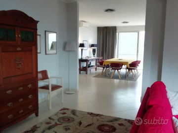 L ingresso si apre sul soggiorno ampio con due divani a tre posti e TV, zona pranzo con grande tavolo, cucina con lavastoviglie e attrezzata di tutto.