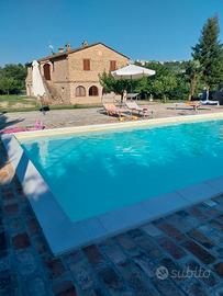 Casa vacanze dotata di 5 camere matrimoniali con servizi interni, piscina, ampi spazi esterni per godere di una vacanza all'insegna del relax nelle campagne marchigiane ma a due passi dalle principali mete turistiche da visitare e dal mare.Affitto l'intera villa. Ideale per gruppi di almeno 15 persone.