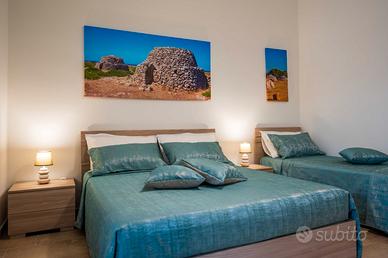 La prima del piano rialzato ("Dimora Mare" - circa 47 mq.) è dotata di camera con letto matrimoniale più lettino, cameretta con 2 letti singoli, soggiorno con angolo cottura, bagno, ampia veranda esterna coperta.