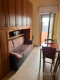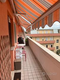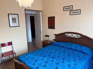 Montesilvano, a 100 metri dalla spiaggia, in Via Italica, traversa riservata del lungomare, luminoso e silenzioso trilocale con vista mare al terzo piano di un piccolo condominio con ascensore. L'appartamento è composto da ingresso, zona giorno con cucina, disimpegno, ampia camera matrimoniale, cameretta, bagno con doccia, due balconi con tende da sole motorizzate, e posto auto coperto in area condominiale chiusa. Ospita fino a 6 persone: 2 in camera matrimoniale, 2 nei letti singoli del divano in cameretta e 2 nel comodo divano letto del soggiorno. Dotato di aria condizionata, wifi, barbecue, forno convenzionale e microonde, lavastoviglie, lavatrice, ampie dotazioni da cucina e tutti i dispositivi di sicurezza di legge.