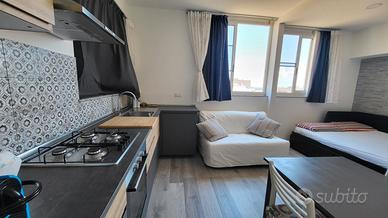Composto da ambiente open space panoramico e finestrato, climatizzato con samsung windfree. Letto a due piazze con Topper in memory foam, divano letto con due posti.