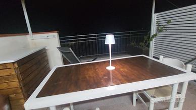 Inoltre terrazzo Panoramico coperto con tenda Ombra dove e' possibile cenare, rilassarsi e stare al sole godendo di un panorama con vista mare. Dotato di salottino, sdraio e lettino Prendisole.